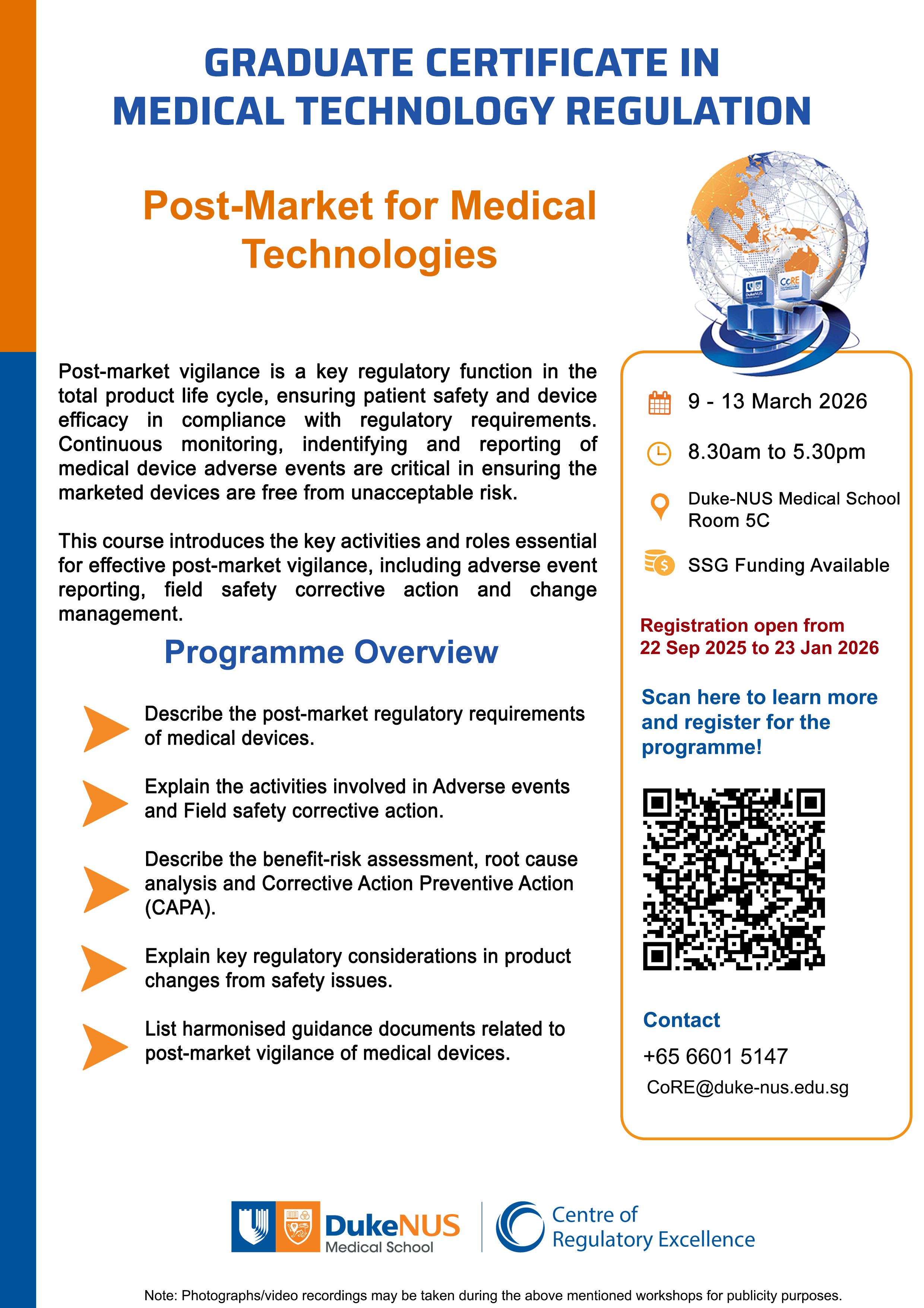CoRE is an accredited provider and continuing education credits are available for pharmacists through the Singapore Pharmacy Council (SPC).