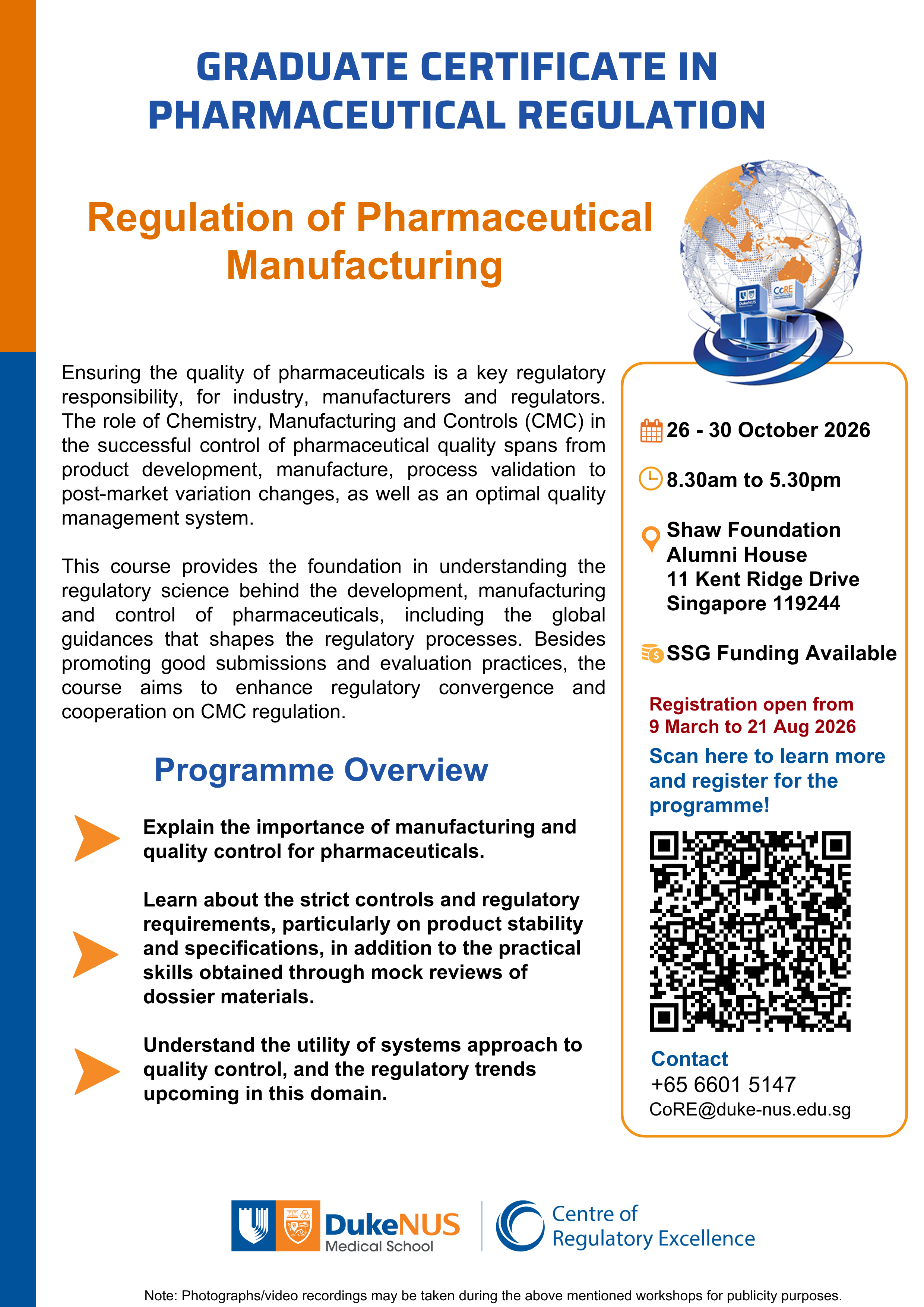 CoRE is an accredited provider and continuing education credits are available for pharmacists through the Singapore Pharmacy Council (SPC).