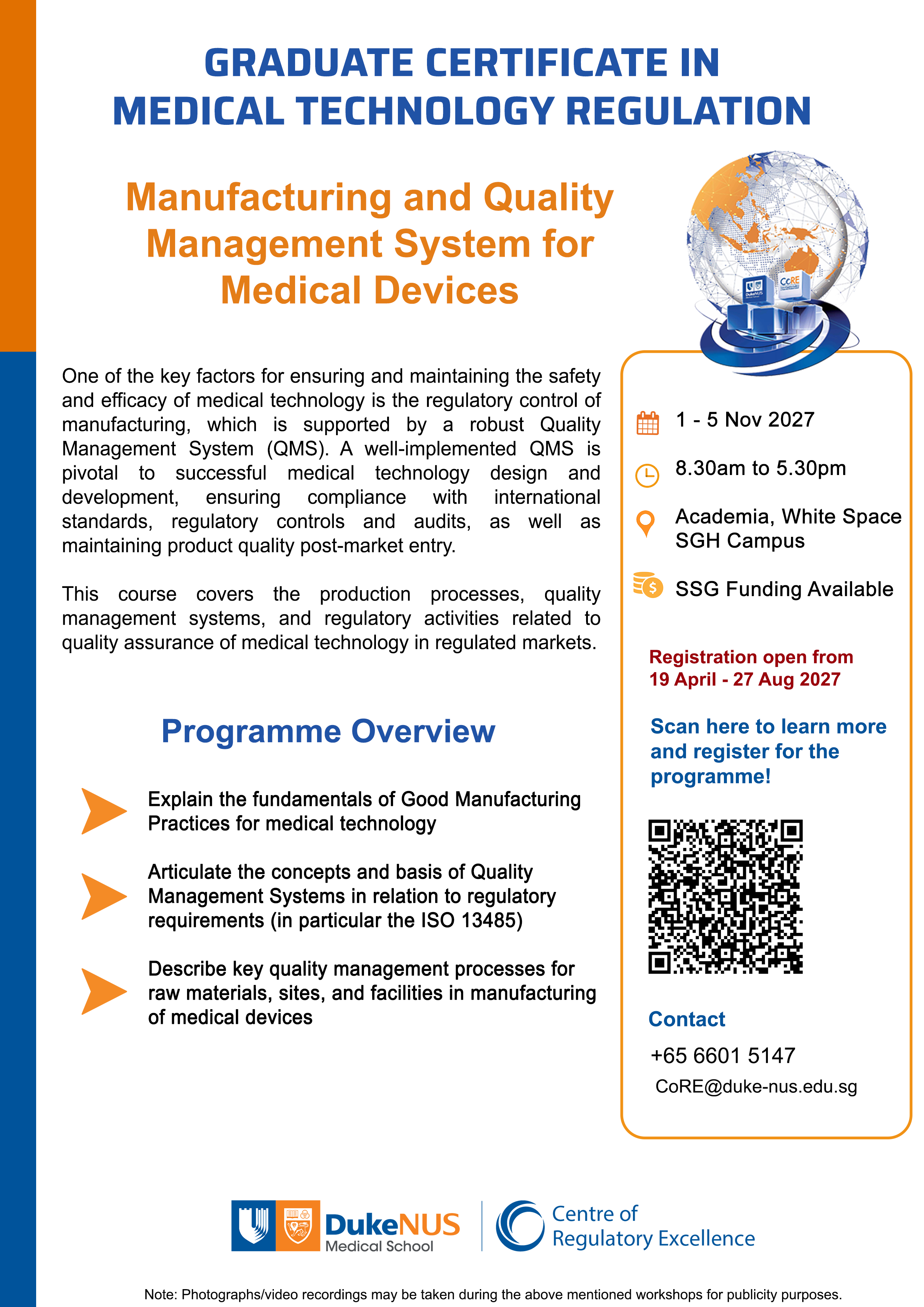 This course will cover the essential aspects of production, quality management systems, and regulatory activities, focusing on quality assurance of medical technology in regulated markets. You will gain a deeper understanding of the processes that ensure compliance and maintain high standards in medical technology.