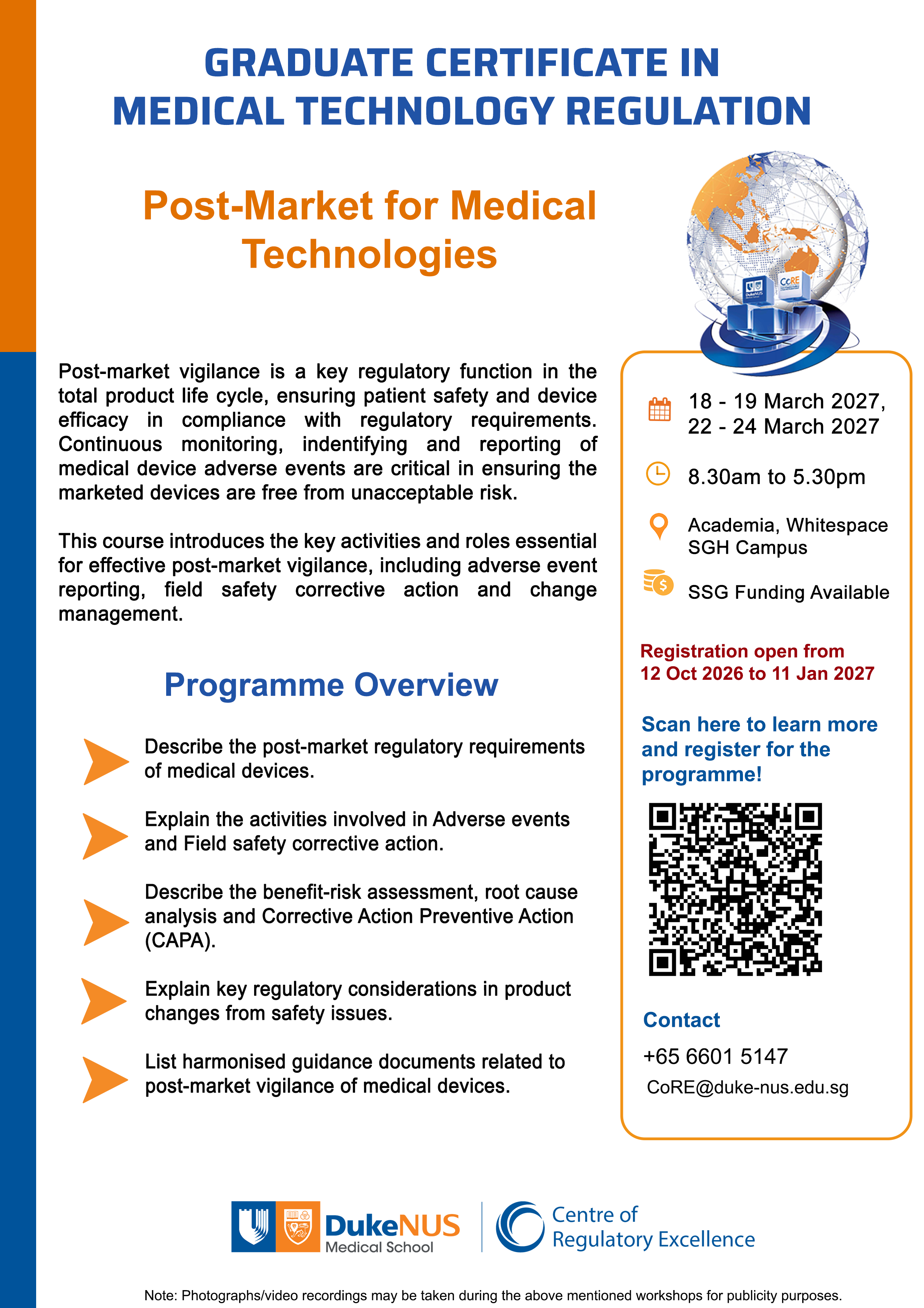 CoRE is an accredited provider and continuing education credits are available for pharmacists through the Singapore Pharmacy Council (SPC).