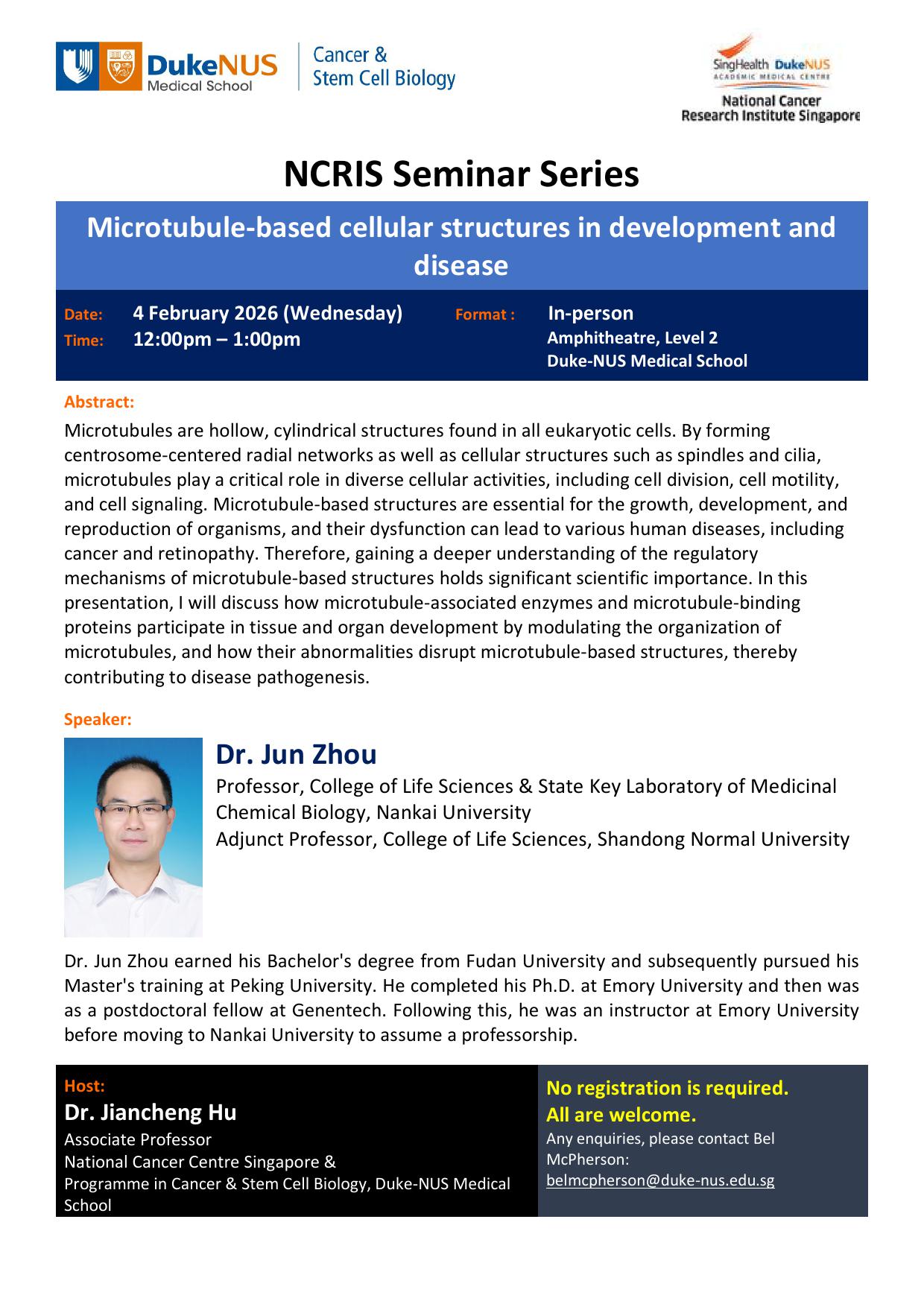 Noon NCRIS Seminar: Dr. Jun Zhou - “Microtubule-based cellular structures in development and disease”