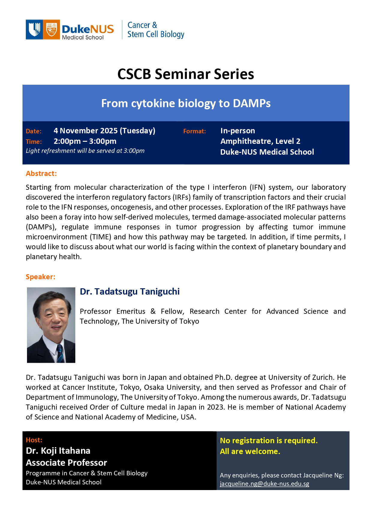 Noon Seminar: Dr. Tadatsugu Taniguchi - “From cytokine biology to DAMPs”