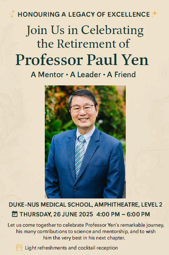 You are invited to this special event celebrating the retirement of Professor Paul Yen, a cherished mentor, leader, and friend to many in the Duke-NUS community.