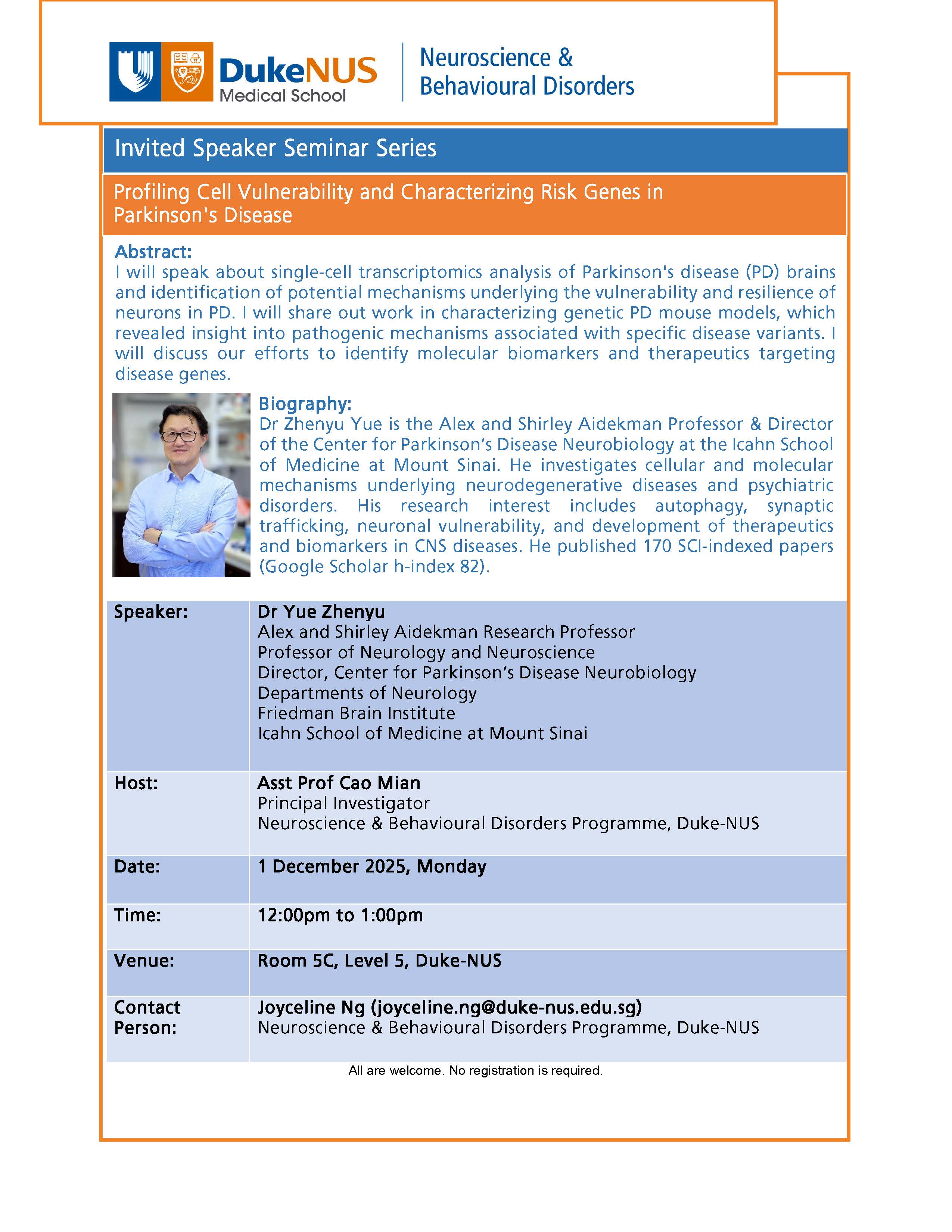 NBD Seminar Series - Profiling Cell Vulnerability and Characterizing Risk Genes in Parkinson's Disease